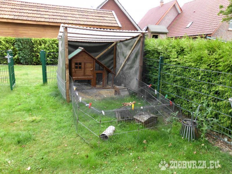 Beschreibung: Freigehege für Meerschweinchen und Kaninchen zu verkaufen. Holzvilla mit Treppe Überdachung für die Villa und Gitter für Auslauf. Mit Netz gegen Feinde. Mit 3 Häuschen.